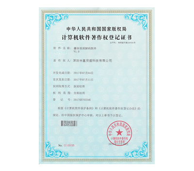 媒體視屏解碼軟件認(rèn)證書