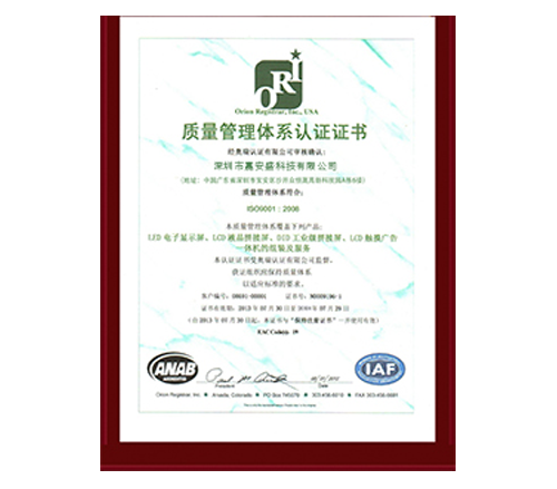 IS9001質(zhì)量管理體系認(rèn)證書
